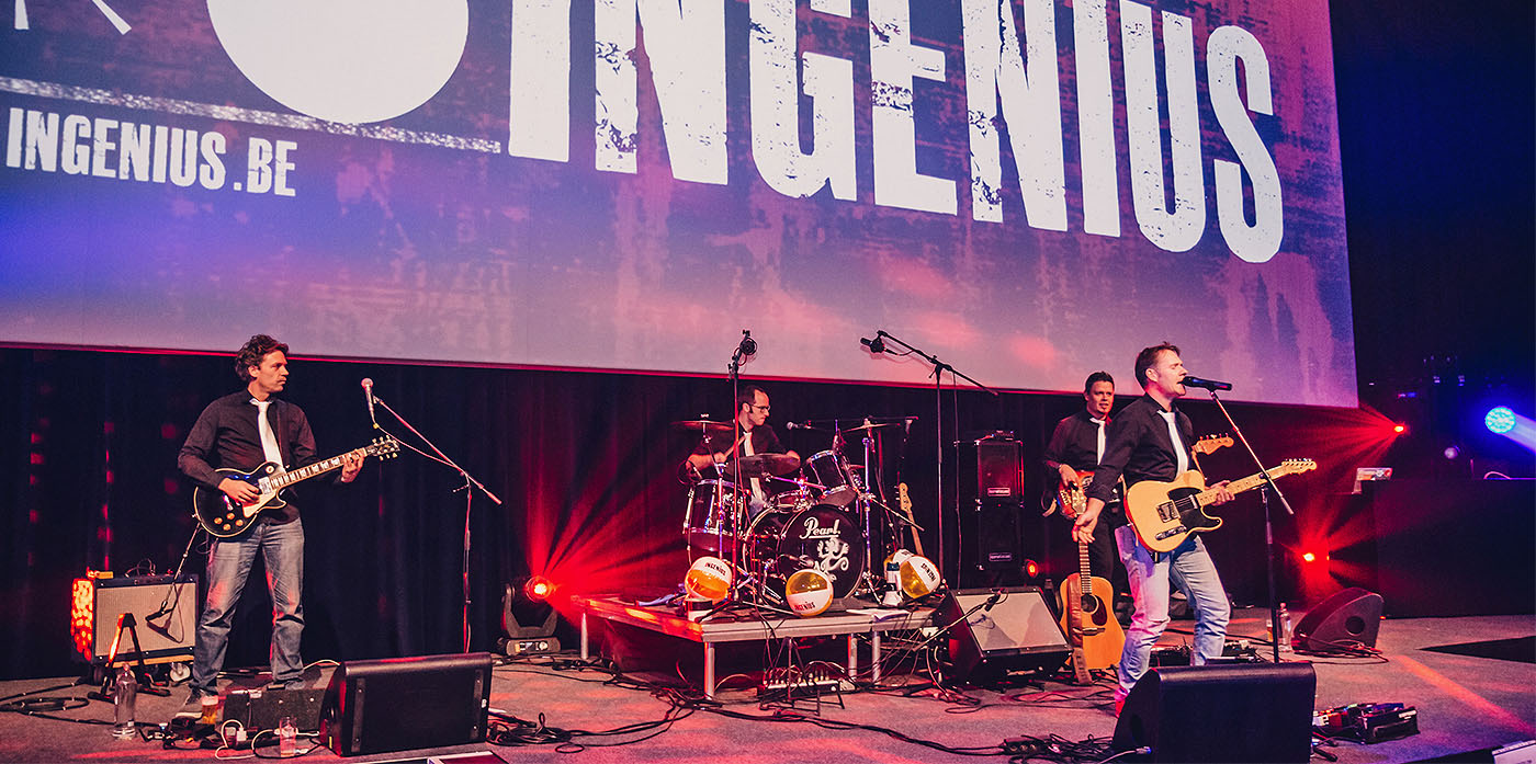 InGenius brengt in een stomende set de meest aanstekelijke hits uit de jaren ’80, ’90, ’00 tot vandaag. Pop, rock maar vooral veel ambiance op en rond het podium. Sinds 1999 werkt InGenius met eigen geluids- en licht techniekers die onze setlist kennen. We hebben een ruim assortiment DJs in verschillende muziekstijlen zodat we uw feest helemaal kunnen afstemmen op uw voorkeuren. Op basis van uw wensen coördineren wij de avond zodat uw evenement volledig volgens plan verloopt. Ingenius bestaat meer dan 20 jaar en behoort tot de absolute top van coverbands in België. InGenius speelde concerten op ruim 300 podia voor bedrijfsevents, trouwfeesten, verjaardagsfeesten en festivals. Indien u een betrouwbare partner-in-crime zoekt die het publiek gegarandeerd laat dansen, dan moeten we eens bellen. Samen